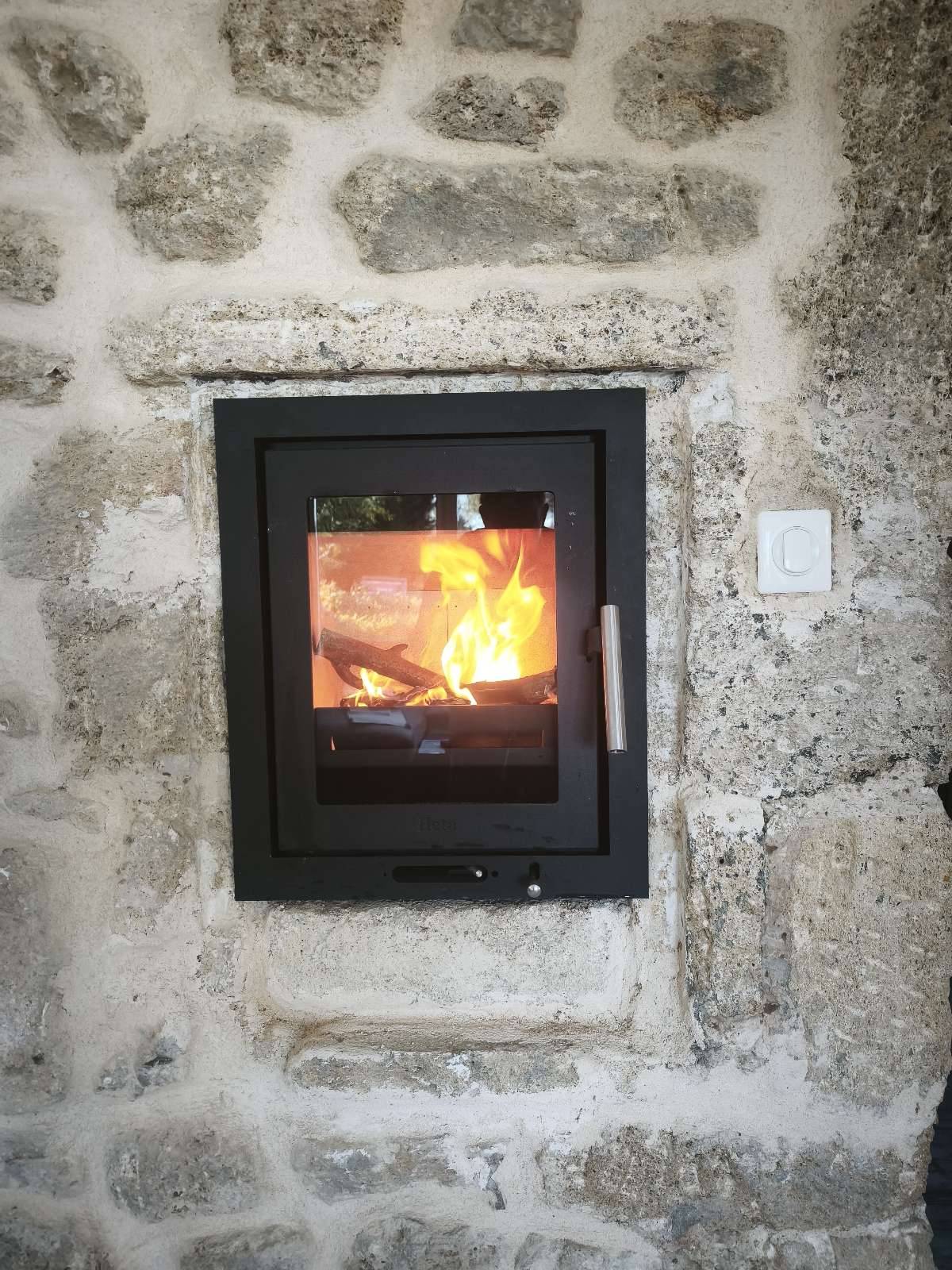 Le projet s’inscrivait dans un environnement existant, avec un emplacement déjà prévu dans un mur en pierre. Cette configuration a permis une intégration harmonieuse de l’appareil, tout en valorisant le cachet du bâti.