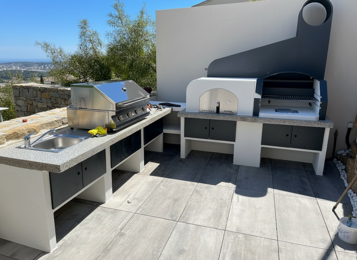 Barbecue MAXIME 2 avec four en marmotech poli gris 90 (240 x95 x 236cm)